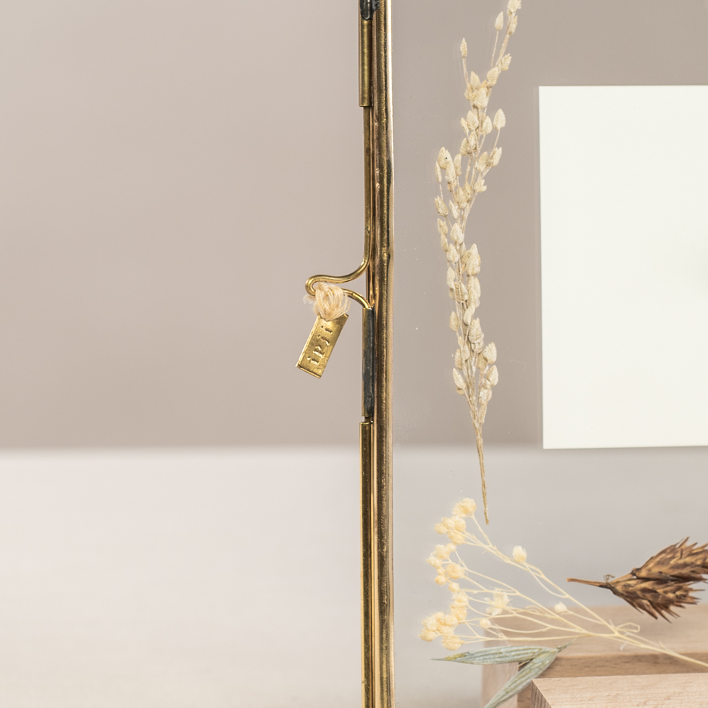 Lijst goud met droogbloemen – Huisje wijntje feestje