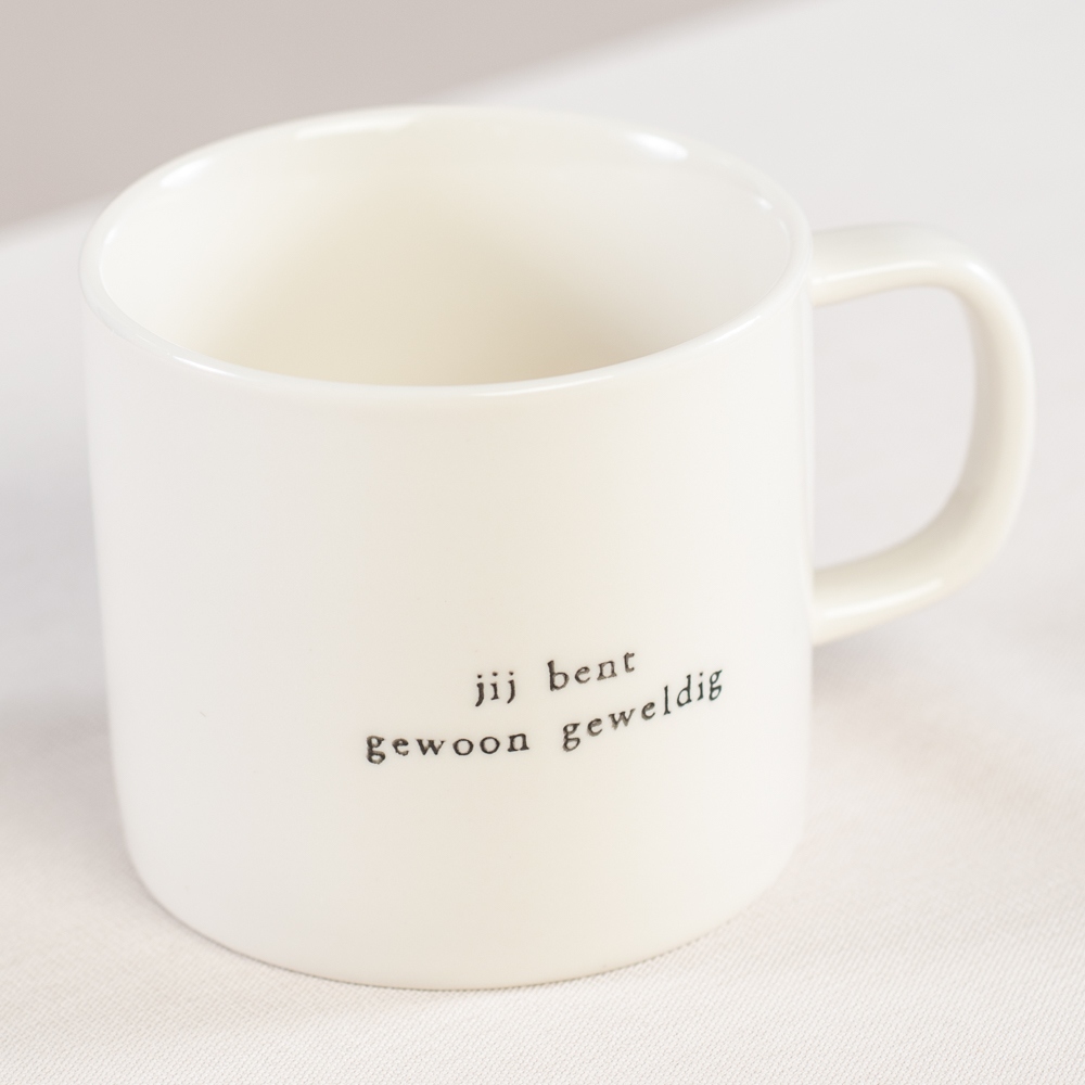 De letters worden handmatig op de mokken gedrukt, daardoor kunnen ze minimaal van elkaar verschillen. Wij houden wel van een beetje imperfectie. Dat maakt elke mok uniek.