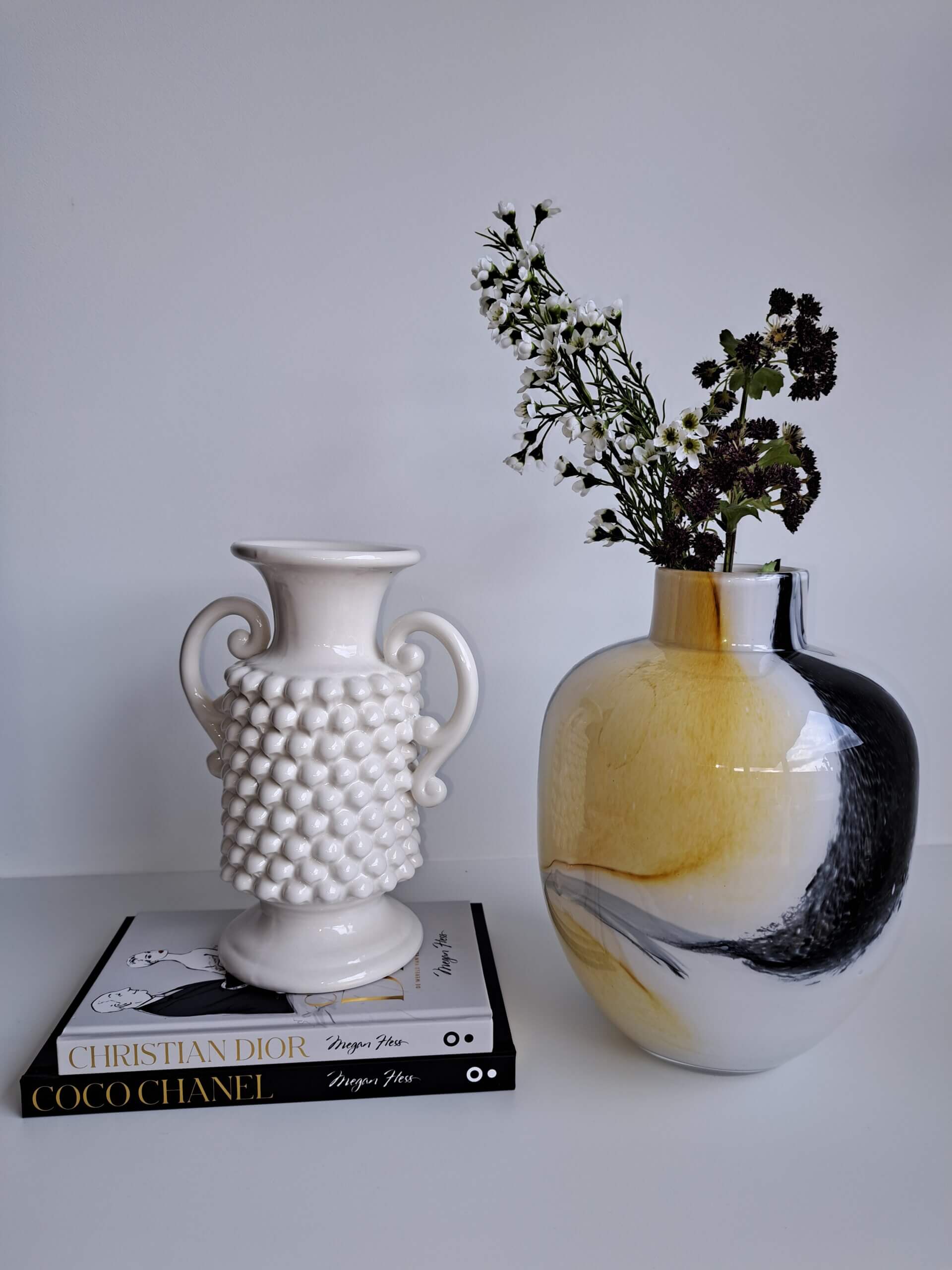 Deze vaas is ideaal voor het presenteren van weelderige boeketten of gedroogde bloemen, waardoor je woonruimte een vleugje natuurlijke pracht krijgt. Of je de vaas nu op een prominente plaats in de woonkamer, de hal of een andere kamer plaatst, het zal ongetwijfeld een blikvanger zijn en een gevoel van elegantie aan je interieur toevoegen